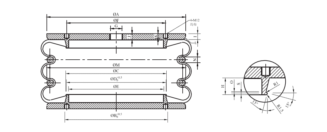 如果對空氣彈簧的耐壓強度有特殊要求,請聯系我們的技術部門,也可定做 4 層加強簾布層的特殊型號。